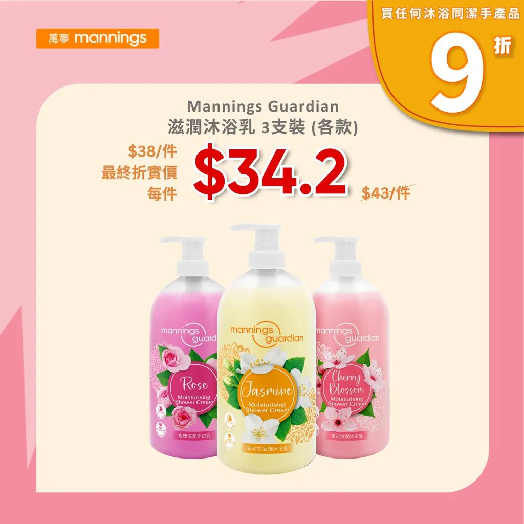 - 買任何沐浴同潔手產品 9折