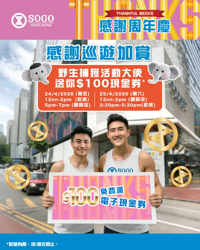 感謝巡遊加賞:野生捕獲活動大使送$100電子現金券