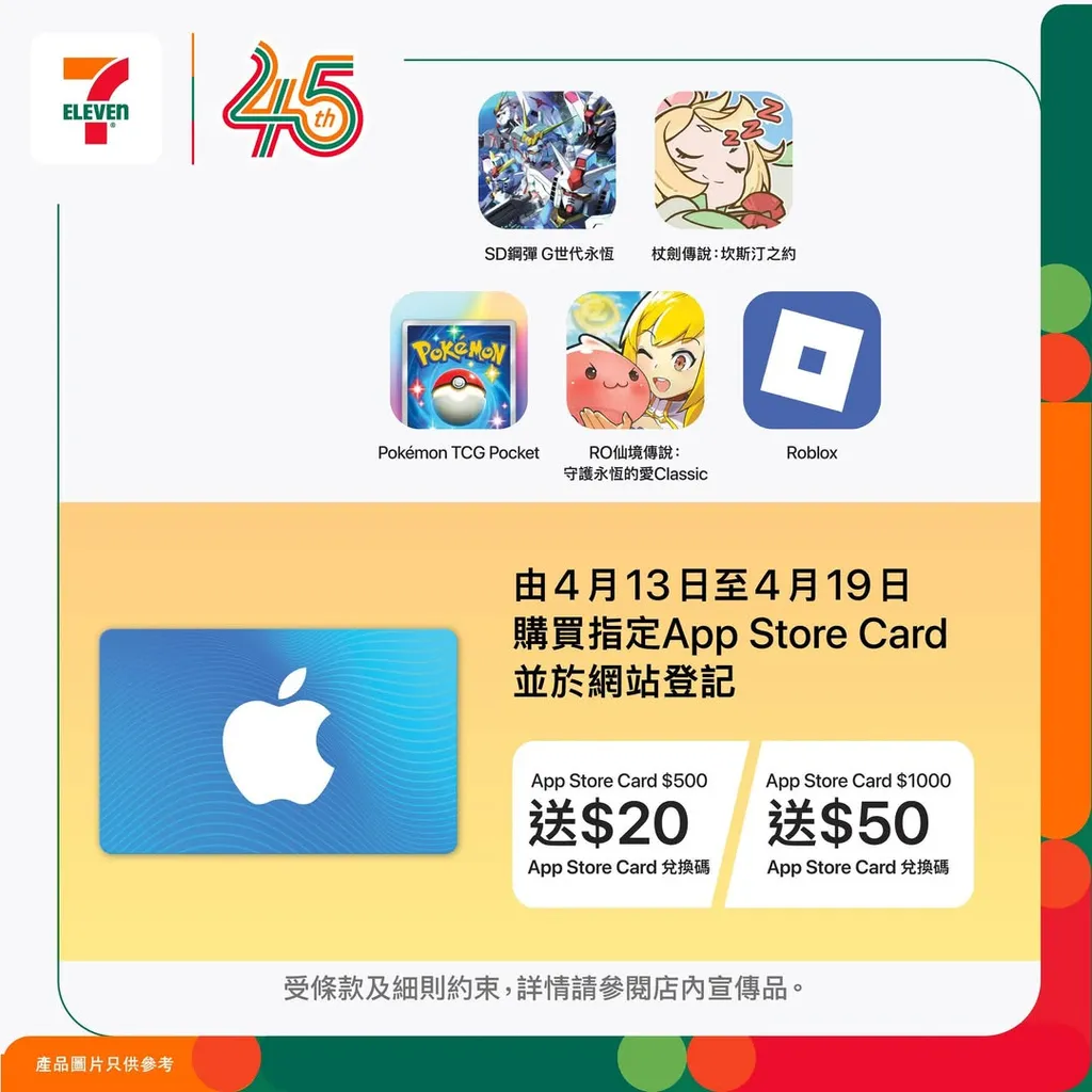 - 購買指定App Store Card並於網站登記。受條款及細則約束,詳情請參閱店內宣傳品。