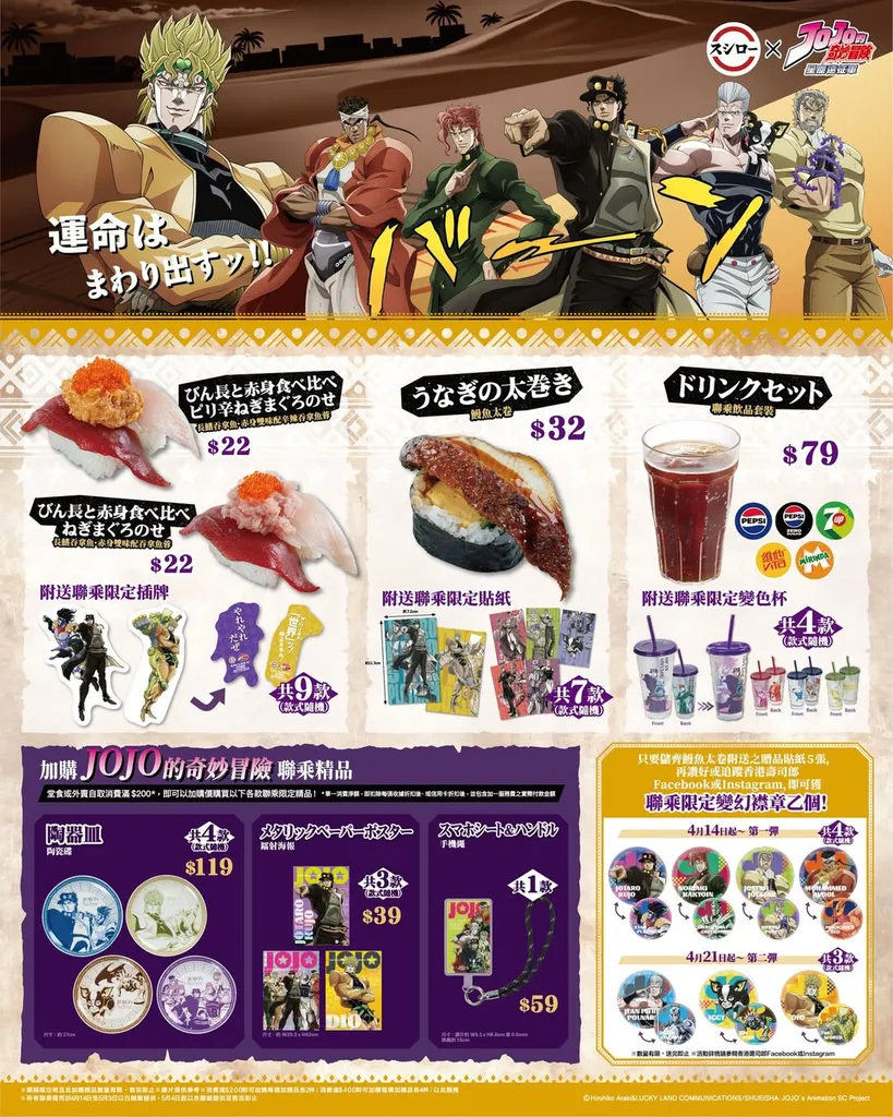- 附贈JOJO的奇妙冒險聯乘限定插牌 (9款)。數量有限,送完即止。