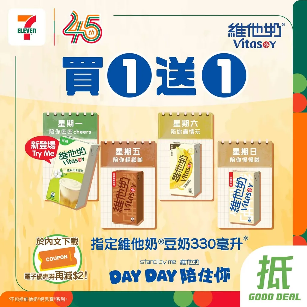 - 於App內下載。適用於指定維他奶®豆奶330毫升*。*不包括維他奶®鈣思寶®系列。