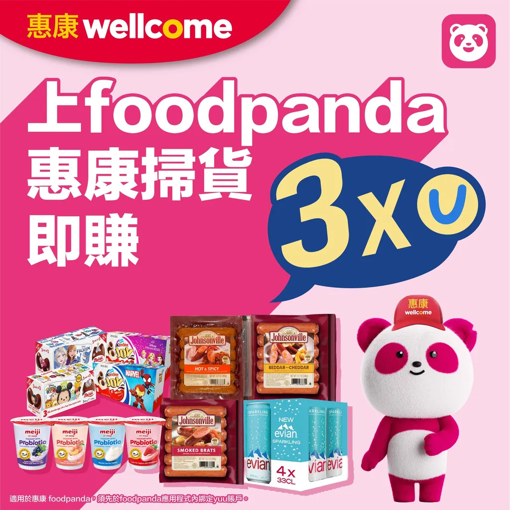 適用於惠康foodpanda。須先於foodpanda應用程式內綁定yuu賬戶。