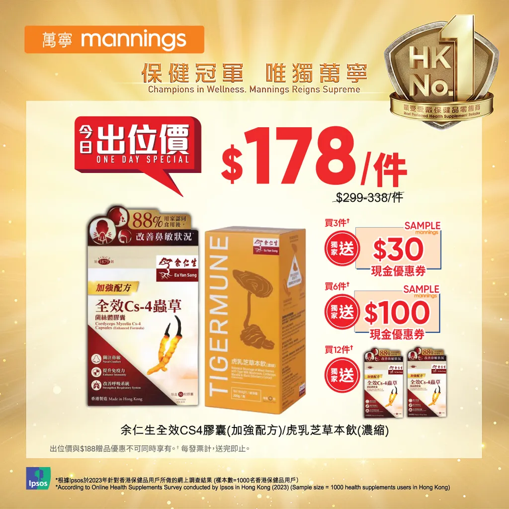 余仁生全效CS4蟲草 (加強配方) / 虎乳芝草本飲 (濃縮)