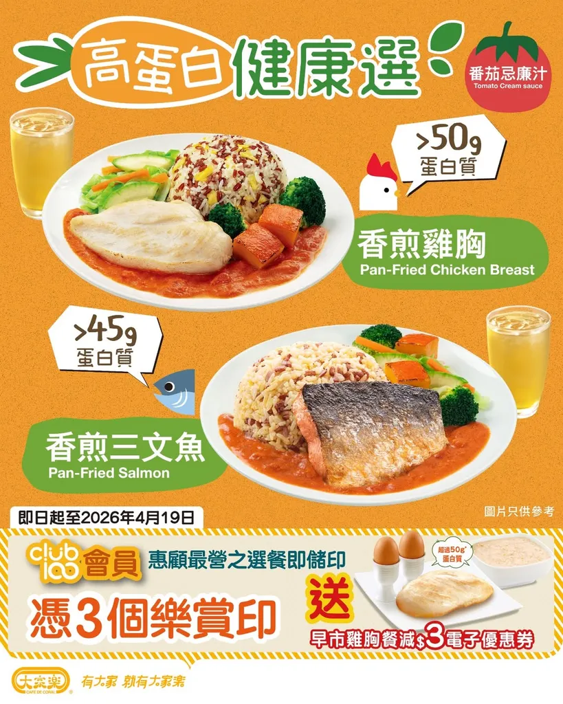 Club 100 會員儲印換早市雞胸餐$3優惠券