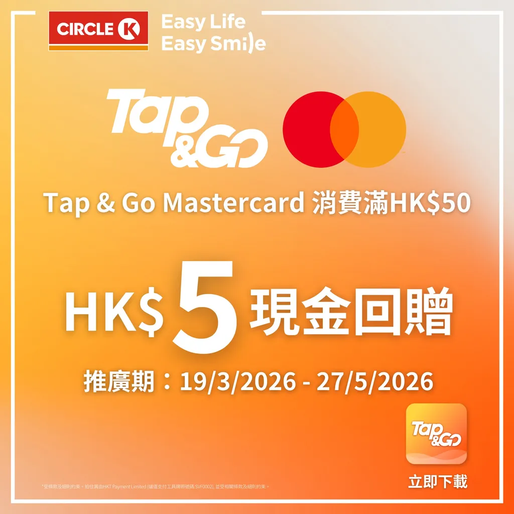 OK便利店Tap & Go Mastercard 消費滿HK$50 享HK$5現金回贈